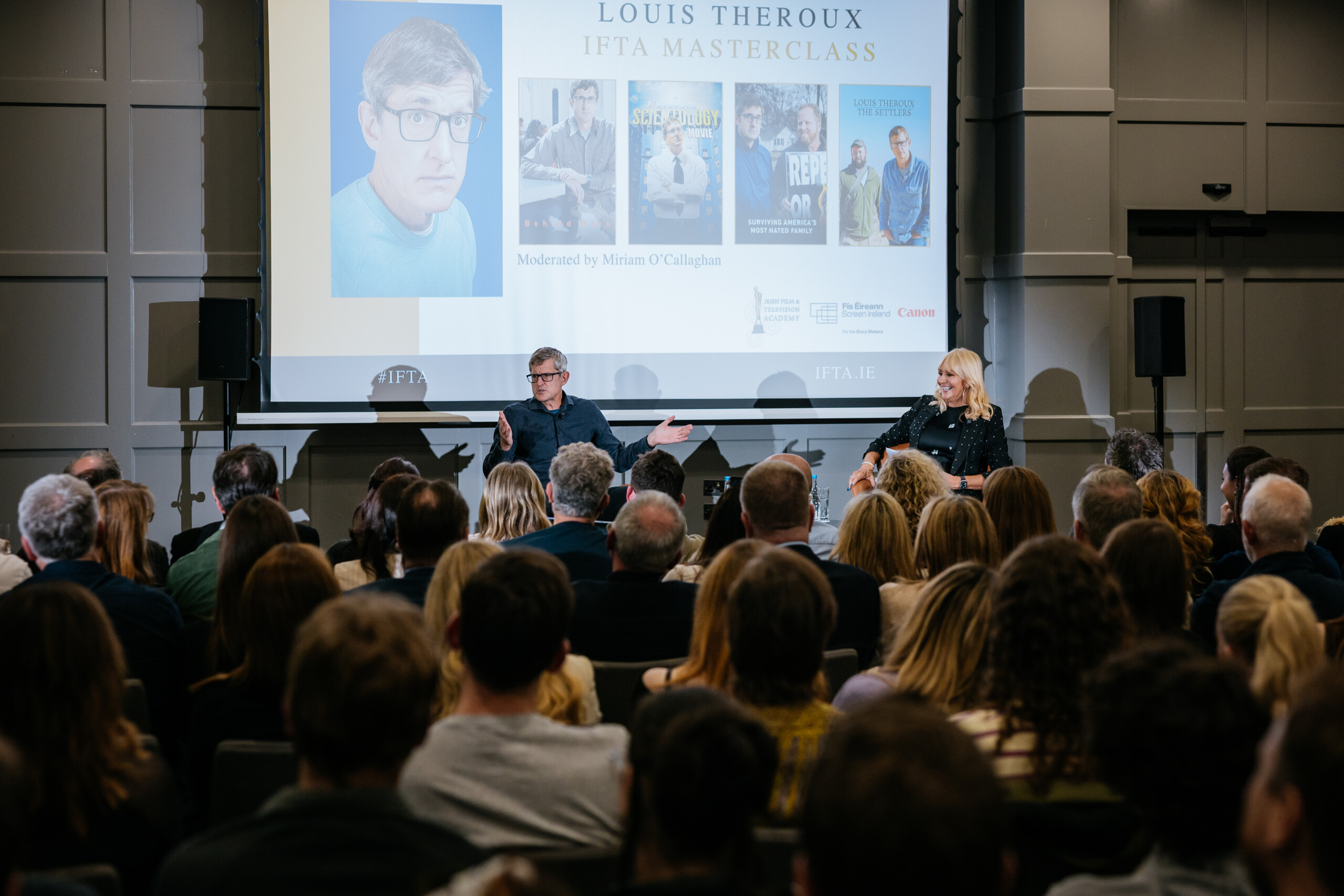 Louis Theroux, world-renowned filmmaker and journalist, delivered a powerful and entertaining IFTA Masterclass sharing fascinating stories from his work and his career.