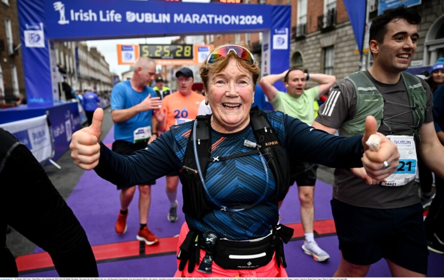She has competed in every Dublin Marathon since its inaugural race in 1980; 43 in total, plus two virtual editions in 2020 and 2021.
