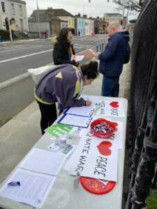 Campaigners say they received massive public support for their message of ‘Love Peace, Hate War’ at a series of street actions and petition stalls on the issue of defending Irish neutrality, which took place on Valentine’s Day (Saturday, 14th), in several communities in Dublin.