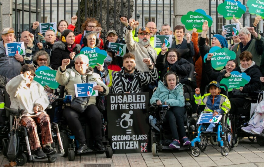 The coalition highlights that Budget 2026 delivered a devastating blow for people with disabilities by leaving them up to €1,400 worse off following the removal of vital support payments.