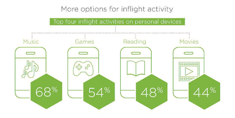 FINDINGS from a survey published last week has revealed that airline passengers are increasingly switching to using their own electronic devices during flights.