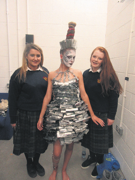 Amy Herbert, Sarah McLoughlin and Leah Fagan wowed the judges with their creation – a girl’s dress made entirely of aluminum cans.