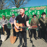 Singer Damien Dempsey performing at the unveiling of the 1916 mural painted by members of KCCP. PHOTO: DARREN KINSELLA