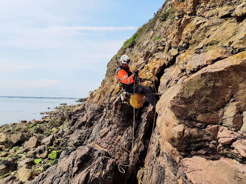 The Irish Coast Guard operations centre received a call in the afternoon reporting that a dog was trapped 15 foot down a cliff at Red Rock in Sutton. A response team from Howth station was quickly on the scene.