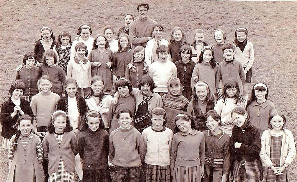 Martina Donnelly, Joan Pawley, Bernie McCormack, Fr Sean, Eileen Moore Flynn (teacher), Liz Barnwell, Evelyn McGonagle, Barbara McCormick, Trudy McCormick.