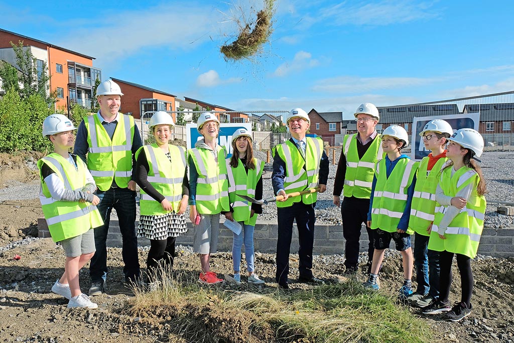 It is expected that the new school, which will house more than 450 pupils and is being led by ABM Design, will be completed at the end of February 2019. Principal of Belmayne ETNS Sinead O’Meara welcomed Minister Bruton to the school. Robyn McCormack, the School President, addressed the Minister, telling him her hopes and dreams for the students who will move to the new school premises. Minister Bruton formally turned the sod along with the Student Council and returned to be part of the school assembly.