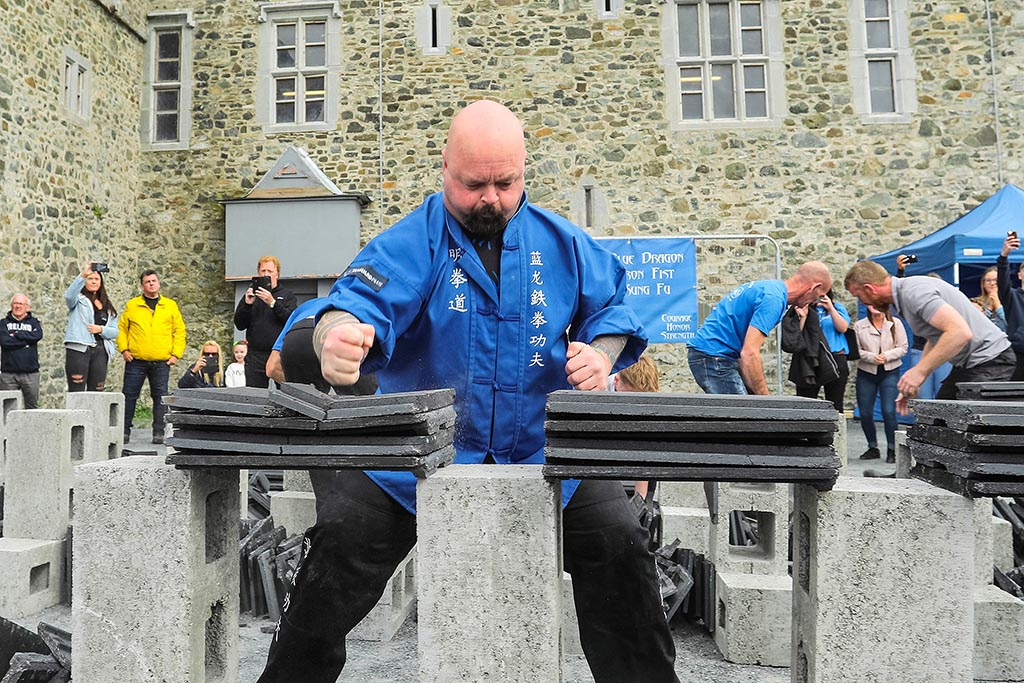 ered at Bremore Castle in Balbriggan to watch Sifu Keith Fanning 9th Dan, from local club Blue Dragon Iron Fist, break 204 concrete roofing tiles in an amazing 50.17 seconds.