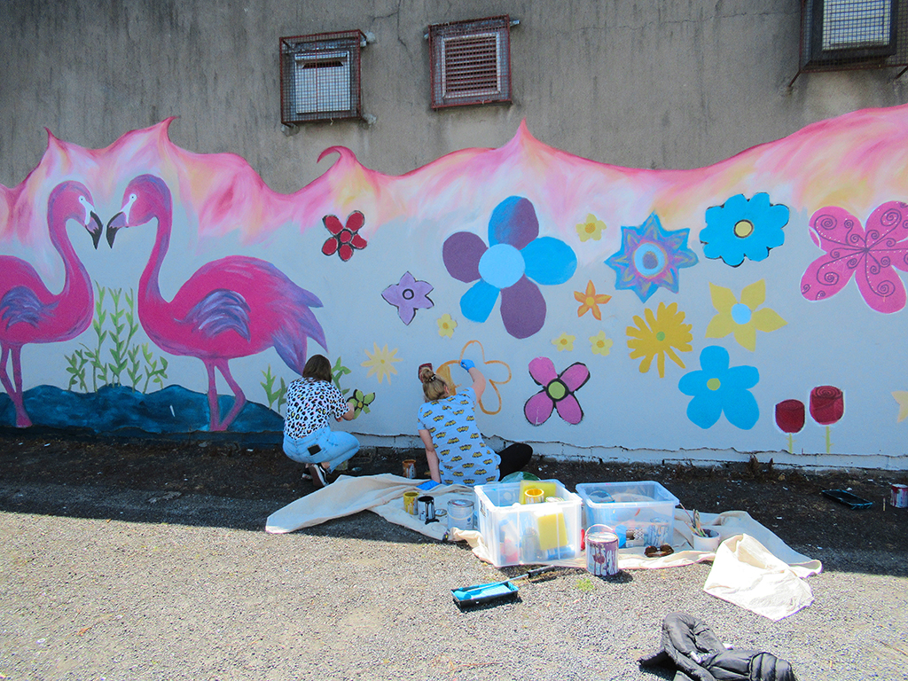 The mural, whose theme is colourful birds, was painted by the centre’s ‘G-Force’ young women’s group with the assistance of local teacher and artist Louise Kelly.