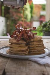 To Serve: serve these pancakes as a stack with a little knob of butter on top, a pile of crispy bacon on the side and drowned in maple syrup.
