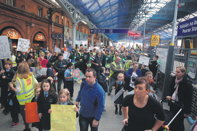 The crowd largely made their way from Dublin 15 by train, with Irish Rail adding additional carriages to cater for the massive number of protestors, while others travelled by car and bus.