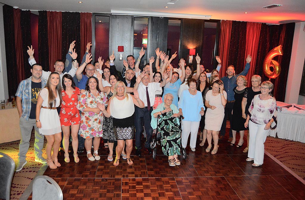 Tom and Pauline, who have lived their entire married life in Lorcan estate in Santry, have five daughters, 16 grandchildren and 18 great grandchildren with another two on the way. They all gathered at the Clouds Suite in the Carlton Hotel Dublin Airport for the anniversary bash.