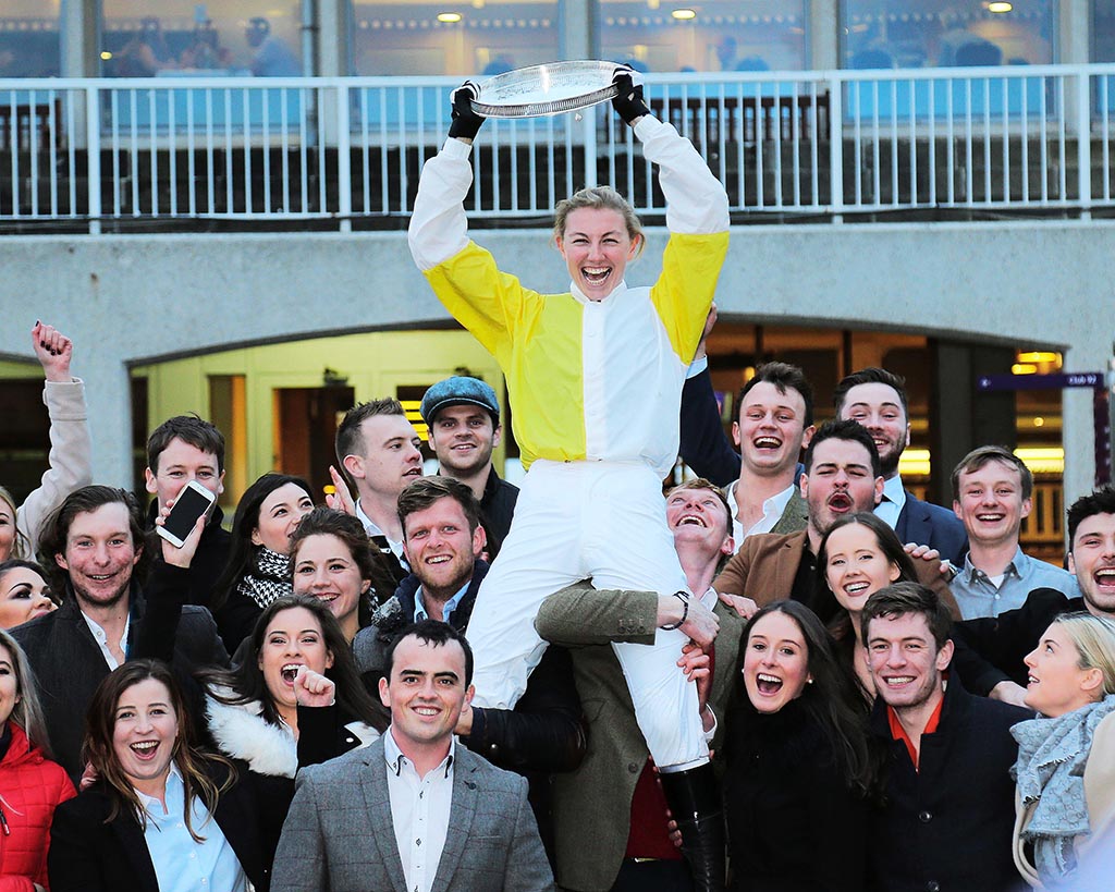 Lynne, who is a work rider at hugely successful trainer Jessica Harrington’s yard, won the opening race of the Corinthian Challenge at the Curragh on Nearly Famous.