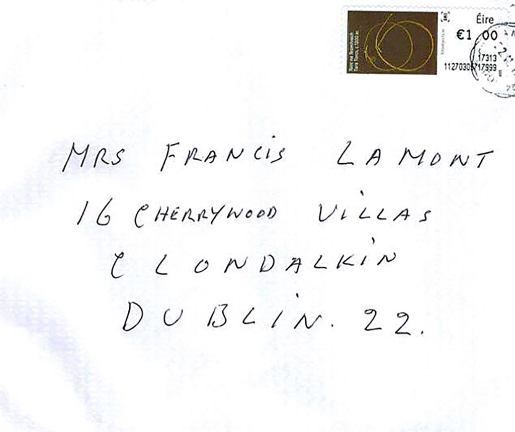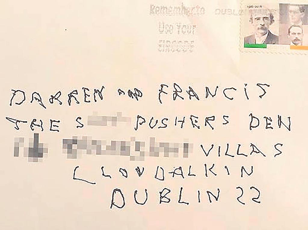 “I have handed both the envelope and the letter over to the gardaí in Clondalkin.