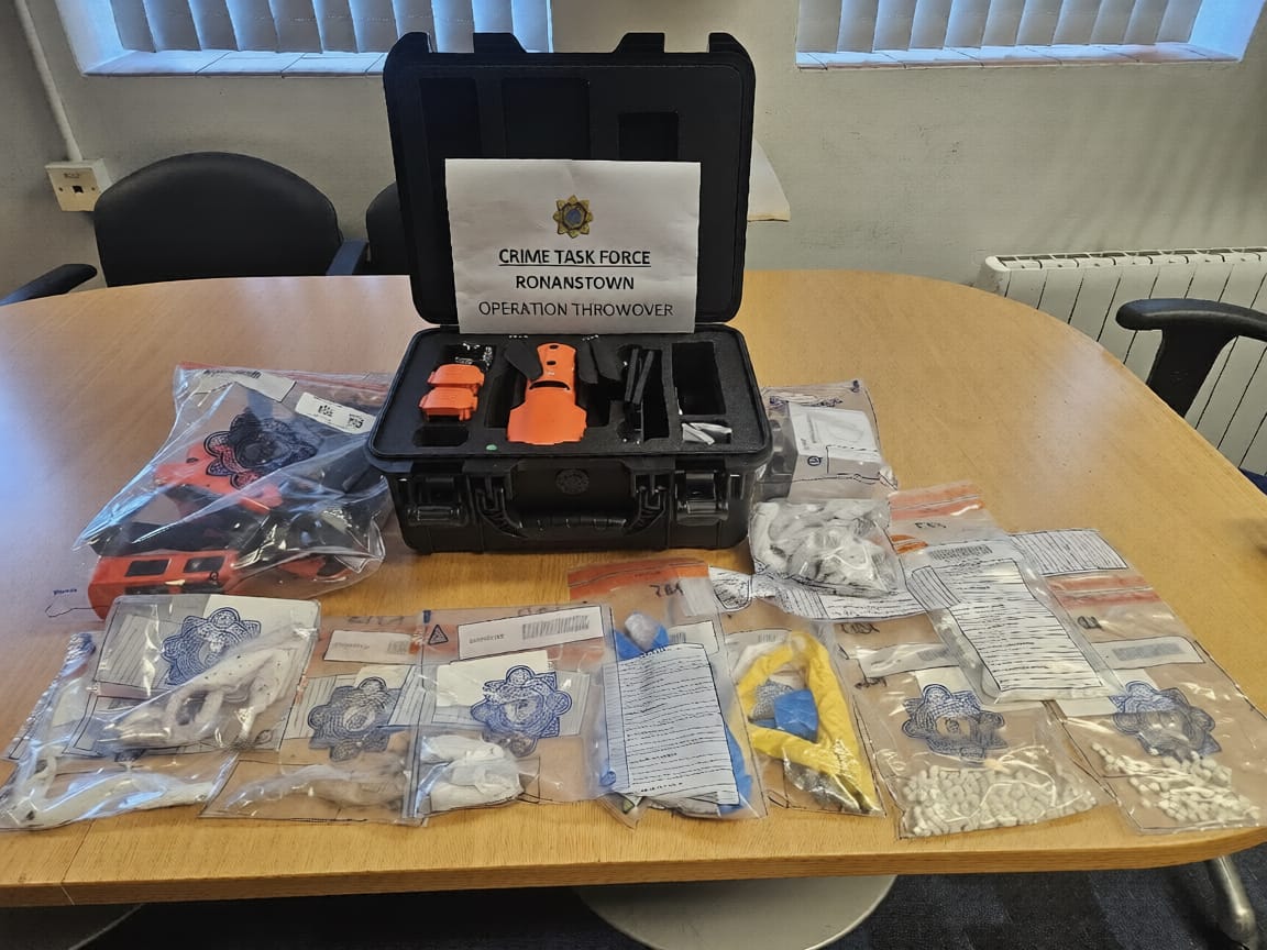 As part of ongoing operations targeting the supply of controlled substances into prisons in the West Dublin area, Ronanstown Gardaí have arrested three men, and seized two drones and €7,000 controlled drugs in West Dublin, on Friday 27th and Saturday 28th March.
